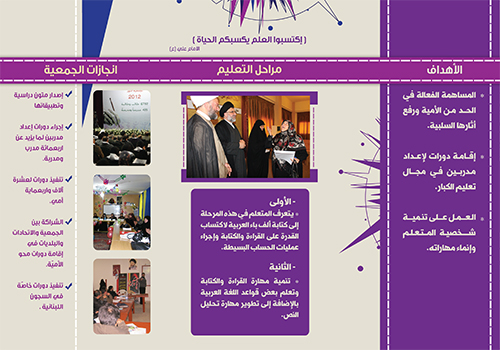 أوساط المجتمع عبر إقامة دورات لتعليم القراءة والكتابة وأنشطة مناسبة في مختلف